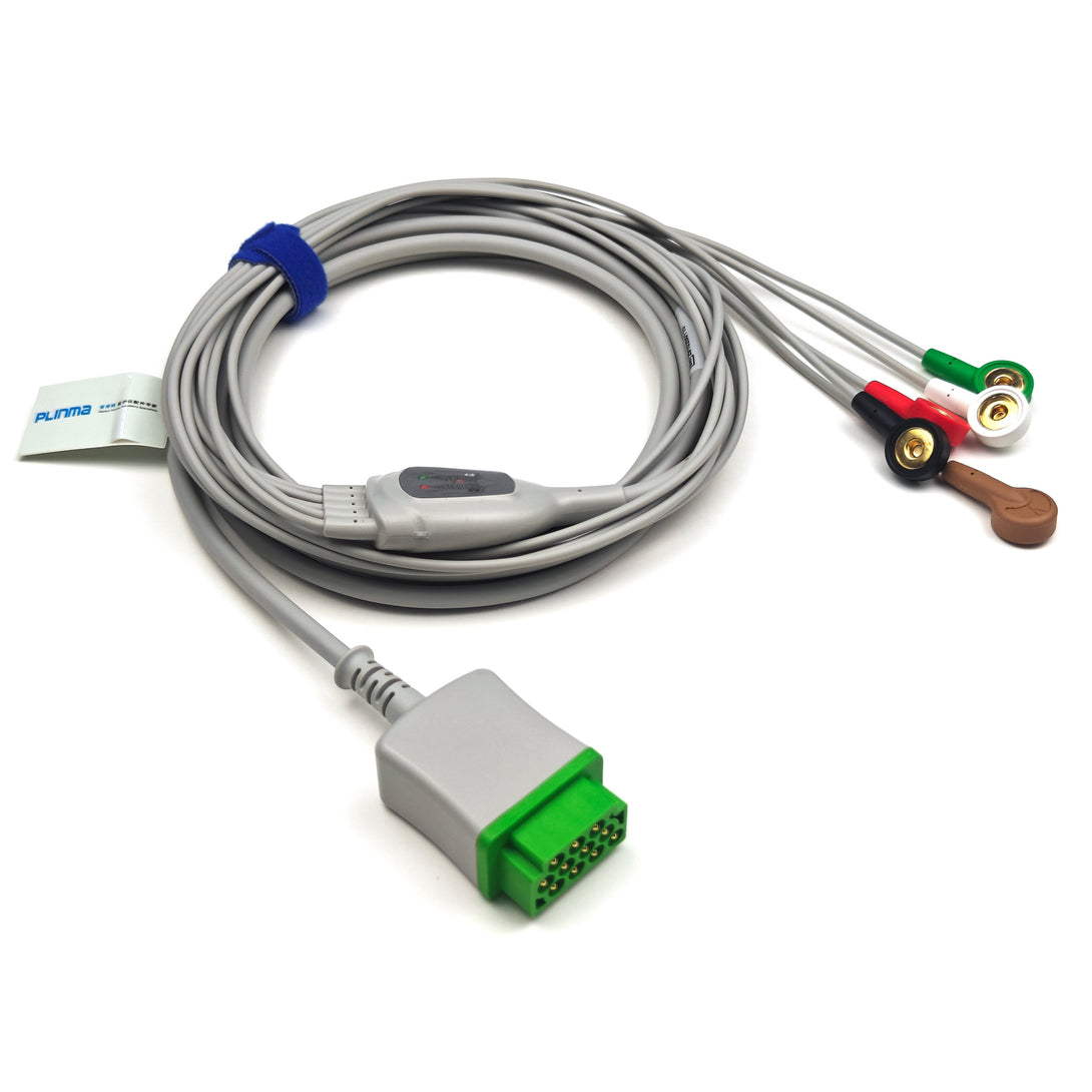 Plinma Compatible GE Marqutte One-Piece ECG Cable 5 Leads Snap AHA P3521-19